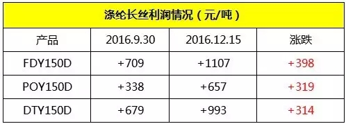 “滌綸長絲供需格局將會改變?!睒I(yè)內投資人預測表示,滌綸長絲行業(yè)的供需格局正發(fā)生深刻變化。滌綸行業(yè)的供需拐點出現(xiàn)在2015年,由于價格周期的拐點往往滯后于供需平衡的拐點,2016尤其下半年以來滌綸長絲景氣度提升、價格反轉的趨勢非常確定。產(chǎn)業(yè)鏈自 2011年以來“PX大賺,PTA、聚酯慘淡”的格局將會大概率改觀,產(chǎn)業(yè)鏈利潤最有可能向聚酯/滌綸長絲端轉移?!?/p>